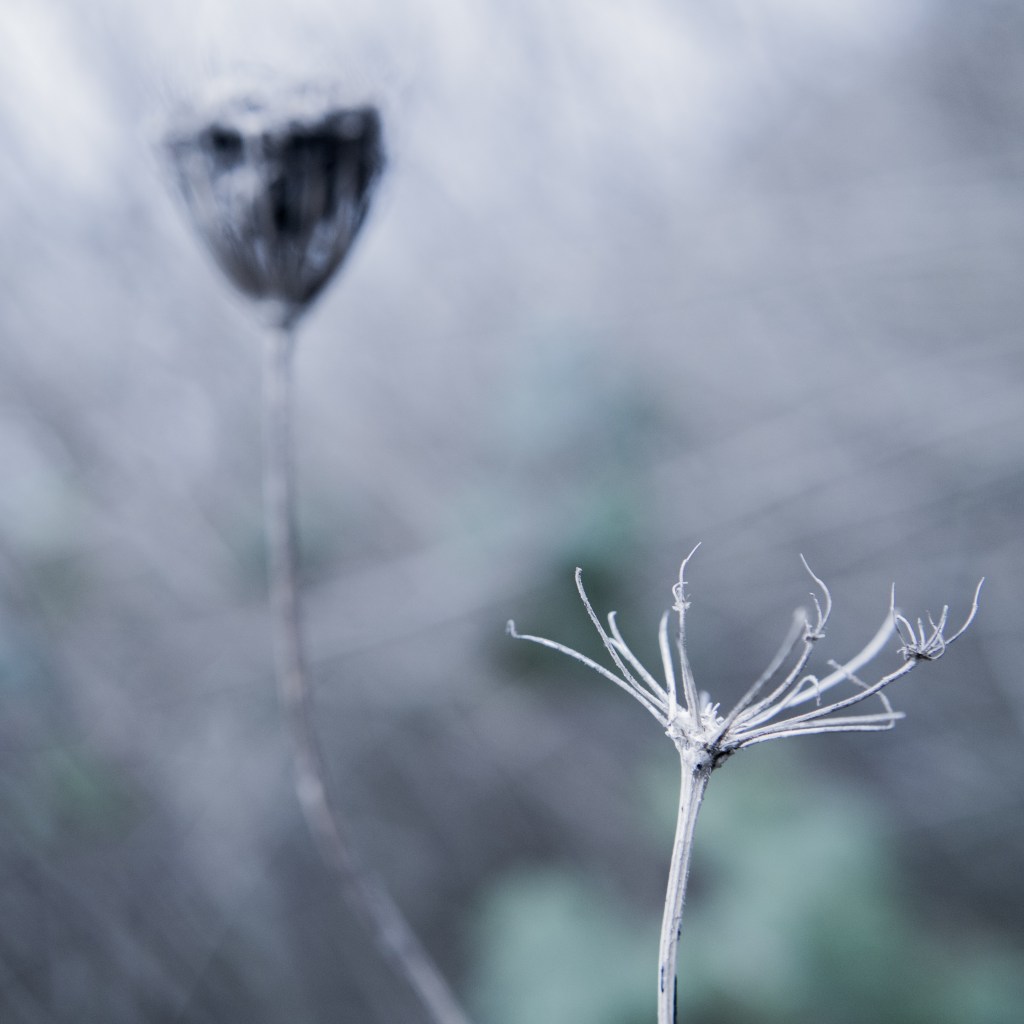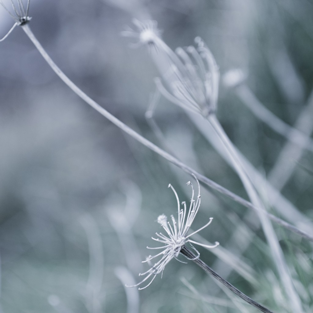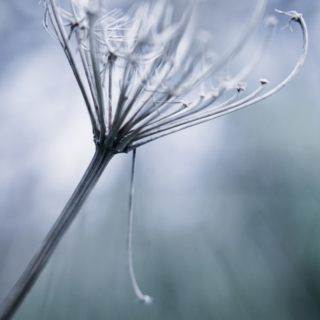 dans cette nouvelle série (dérivée de #7 vert) je me suis davantage penchée sur les subtilités graphiques de ces petites choses, en composant mes images en tenant compte des lignes, des « dessins » des tiges, du format carré dès la prise de vue (un léger recadrage était toutefois plus judicieux pour certaines images, le vent n’étant pas toujours facile à apprivoiser ! ). Très rapidement, alors que je « cherchais » initialement du Vert, je visualisais l’image finale, avec des couleurs désaturées et froides pour accentuer le graphisme et valoriser ces motifs fins et subtils, comme de la dentelle… mais aussi pour révéler et raconter l’atmosphère de l’instant …