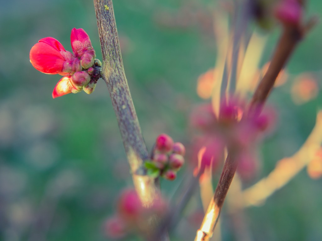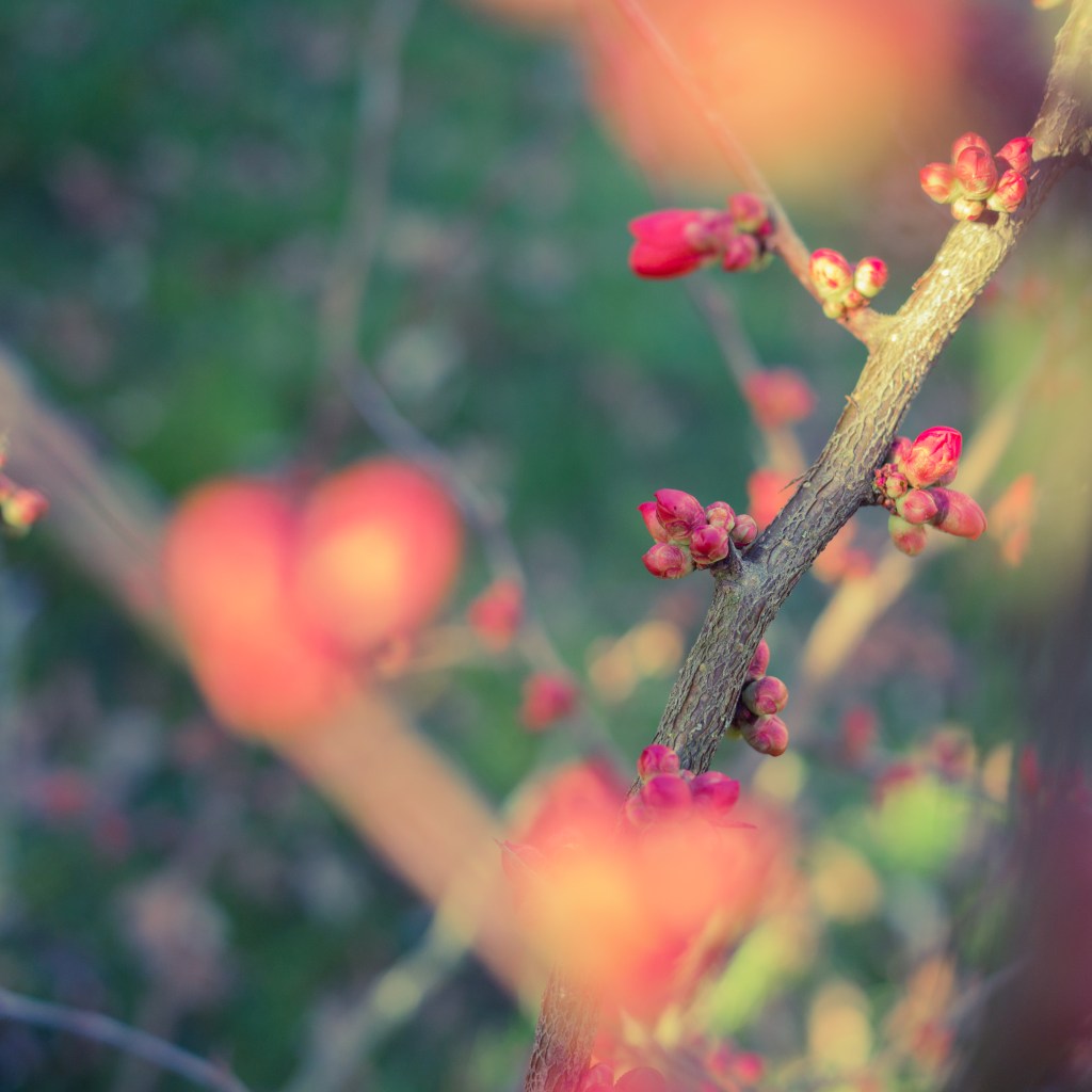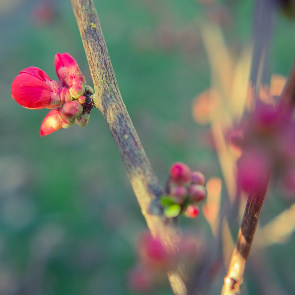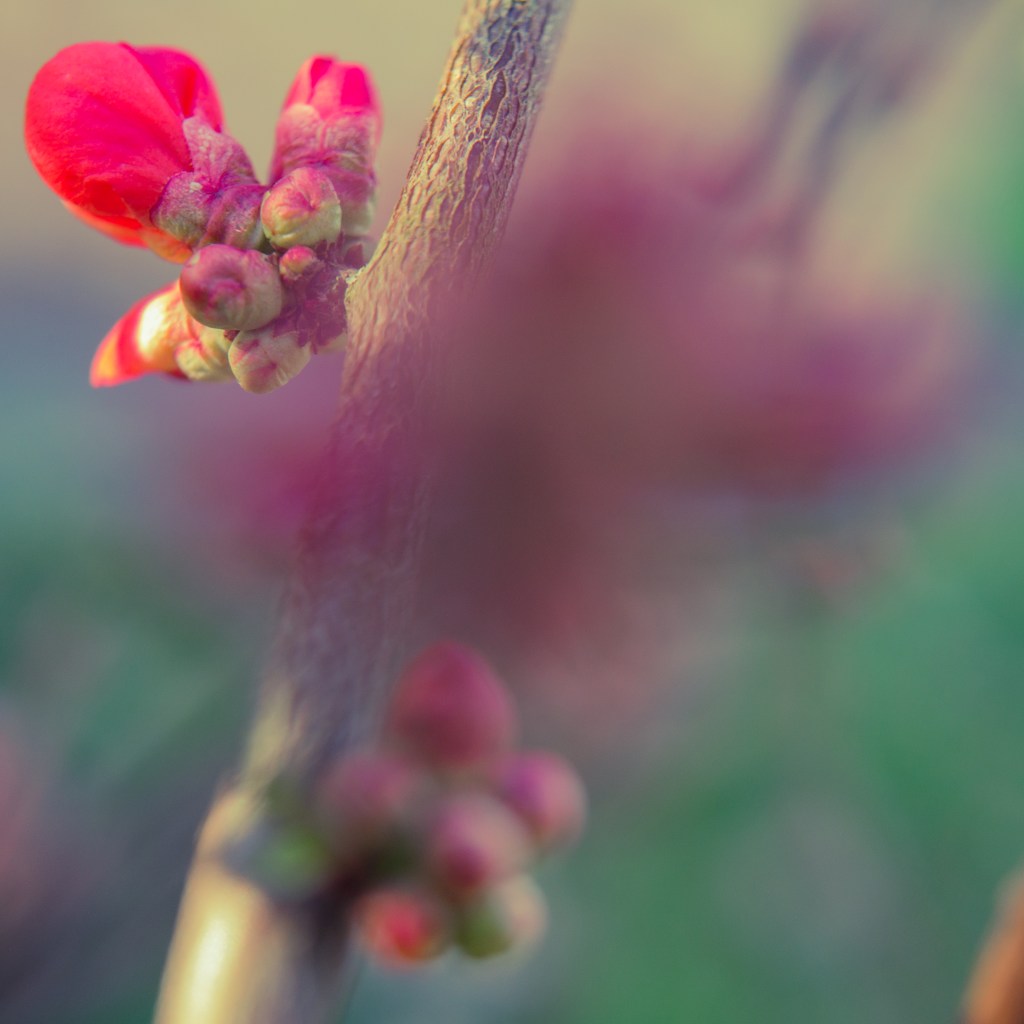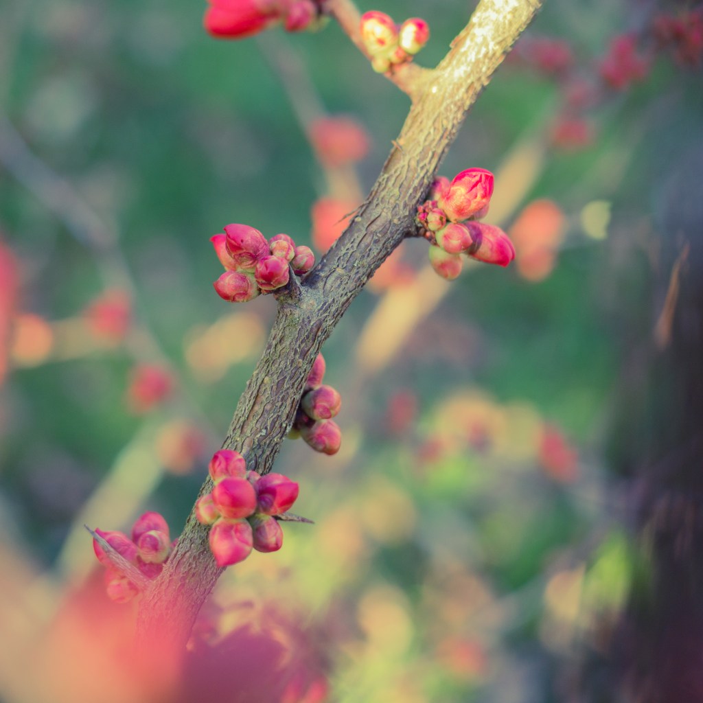 Magnifique ! Avec des flous très bien gérés, qui mettent en valeur la délicatesse des boutons. Ne serait-ce pas des promesses de fleurs de cognassiers du Japon ?