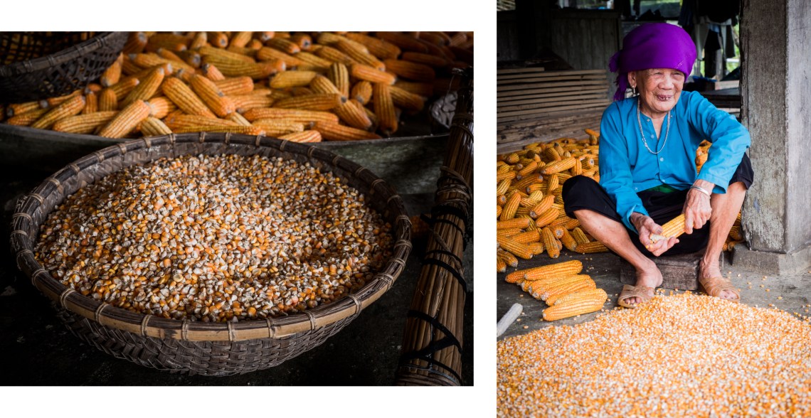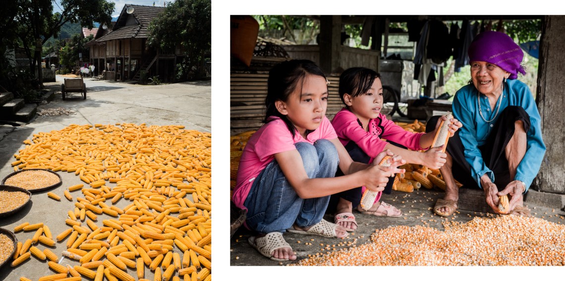 Au quotidien, hommes et femmes s’adonnent aux taches agricoles, dans les rizières, les potagers, égrènent le maïs dans l’espace ombragé aménagé sous les maisons sur pilotis. Il règne dans ces villages une atmosphère totalement incomparable aux autres.