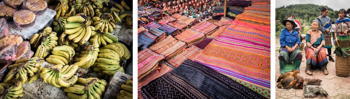 Le marché de Bac Ha qui anime cette petite bourgade paisible le dimanche est un lieu de rencontres sans pareil, les différentes ethnies montagnardes affluent de toute la région, vendent leur production (de l’alcool de maïs, des fruits et légumes, des broderies en passant par les animaux d’élevages, etc…)